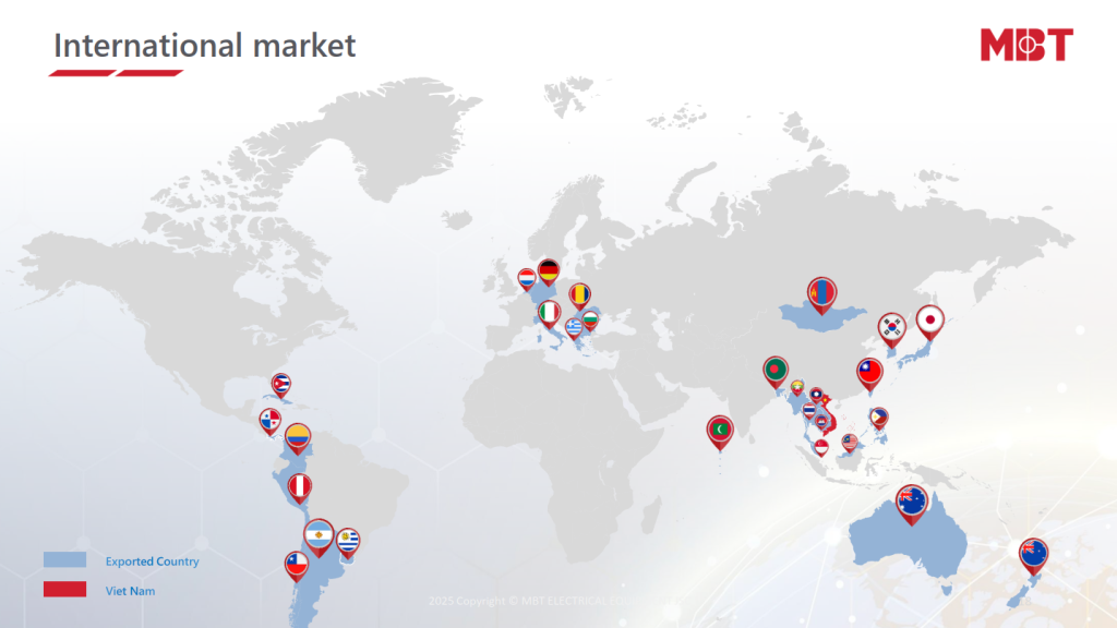 Beyond Asia, MBT transformers have been delivered to Europe, Oceania, and other markets with demanding technical standards, contributing to the global recognition of Vietnamese-made transformers.
